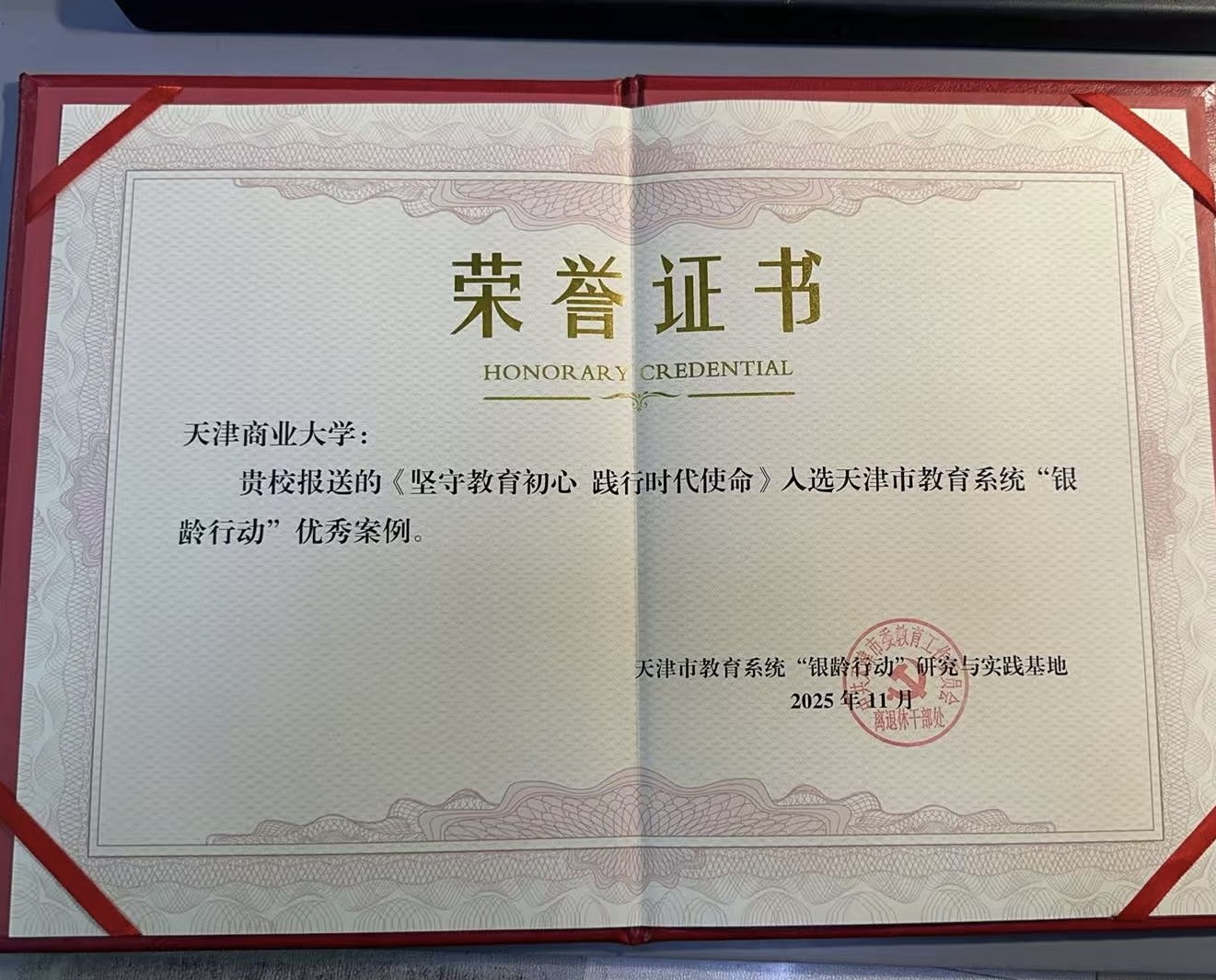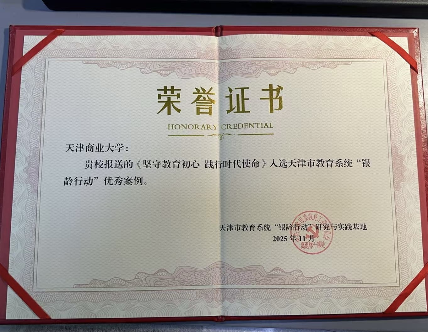 近日,我校离退休工作处在组织参加天津市教育系统“银龄行动”优秀案例征集活动中荣获两项荣誉:我校荣获“优秀组织单位”称号,报送的《坚守教育初心 践行时代使命》——天津商业大学退休教师刘会洪先进事迹,入选天津市教育系统“银龄行动”优秀案例。