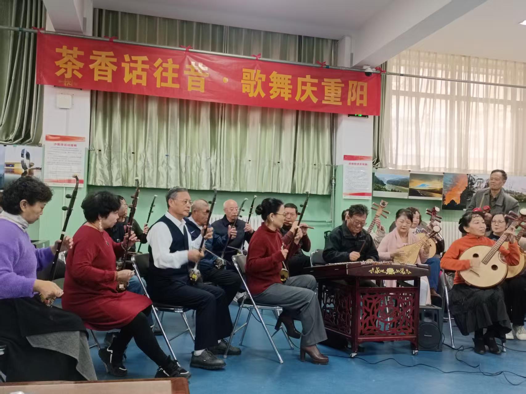 文艺表演以退休民乐协会的民乐合奏《青藏高原》《喜洋洋》开场,展现中华传统音乐魅力并传递节日欢快气息,让老同志沉浸其中;随后四位学生代表带来诗朗诵《致我们敬爱的老师》,用真挚语言表达对离退休教师的敬意,彰显“老少同心、薪火相传”氛围;传统戏曲环节,申雅萍、薛宗厚两位老师分别演唱京剧选段,字正腔圆的唱腔与激昂的旋律唤起老同志回忆,赢得阵阵掌声;邢素军老师朗诵《茅屋为秋风所破歌》,以感染力的声音传递家国情怀与人文温度;最后离退休工作处刘双燕老师的二胡独奏《赛马》将现场气氛推向高潮,灵动琴音获老同志称赞,全场掌声经久不息。